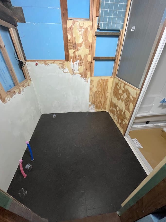 前編ではユニットバスの設置まで。ここからが本番、お風呂とセットで洗面所の制作です。